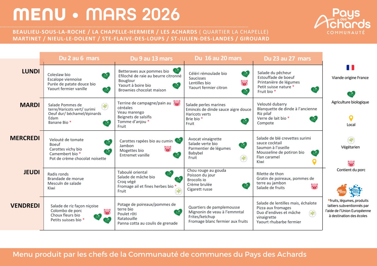 MENUS DU RESTAURANT SCOLAIRE - MARS 2026