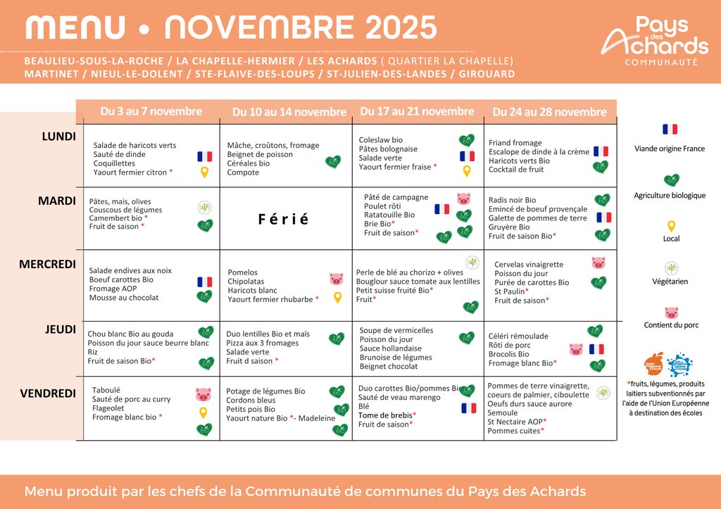 MENUS DU RESTAURANT SCOLAIRE - NOVEMBRE 2025