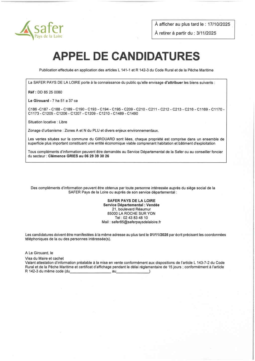 APPEL DE CANDIDATURES SAFER PAYS DE LA LOIRE
