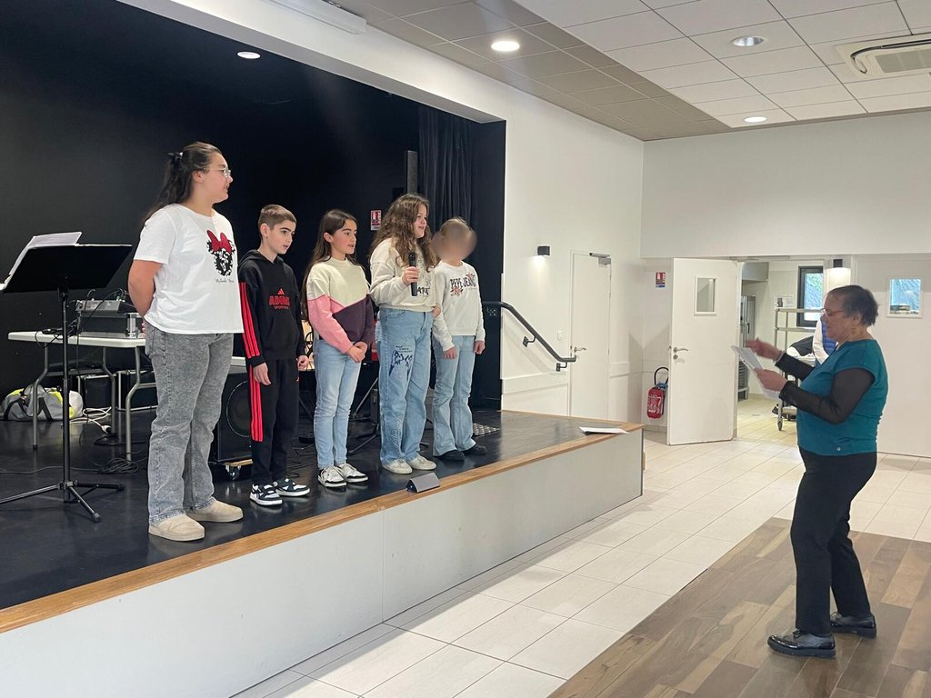 Les élèves de CM2 ont apporté une belle touche de solidarité en accompagnant les élus lors du service, dans le cadre de l’action « Prendre soin de ses aînés » du passeport du civisme. Ils ont également décoré les tables avec de jolis pliages de serviettes et offert un moment musical très apprécié en interprétant "Le chemin de la plage" accompagnés des élus puis « On écrit sur les murs ».